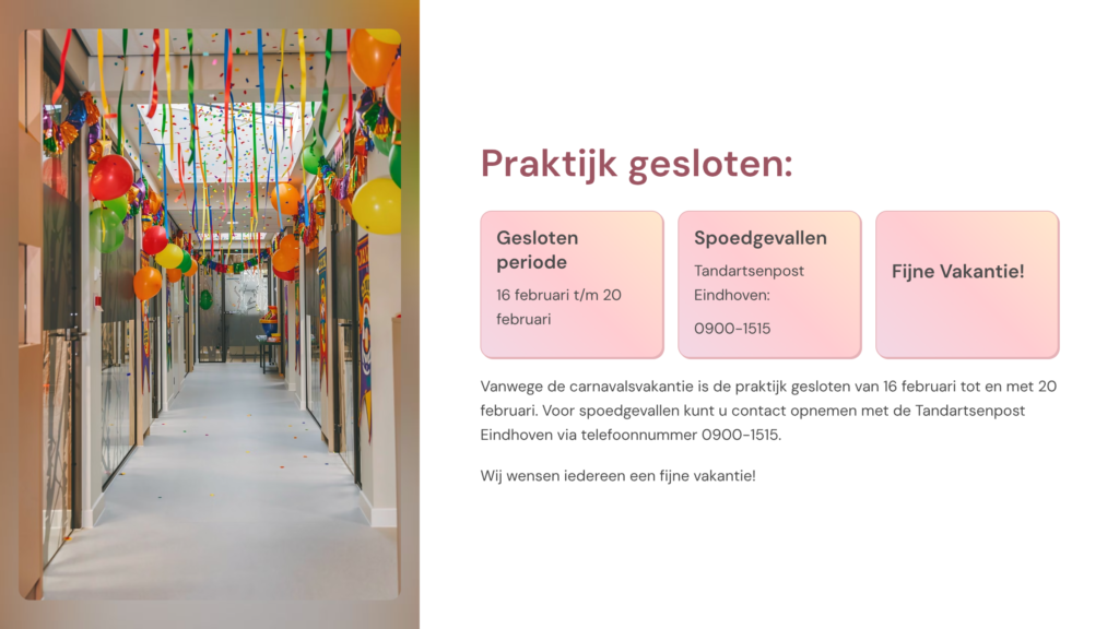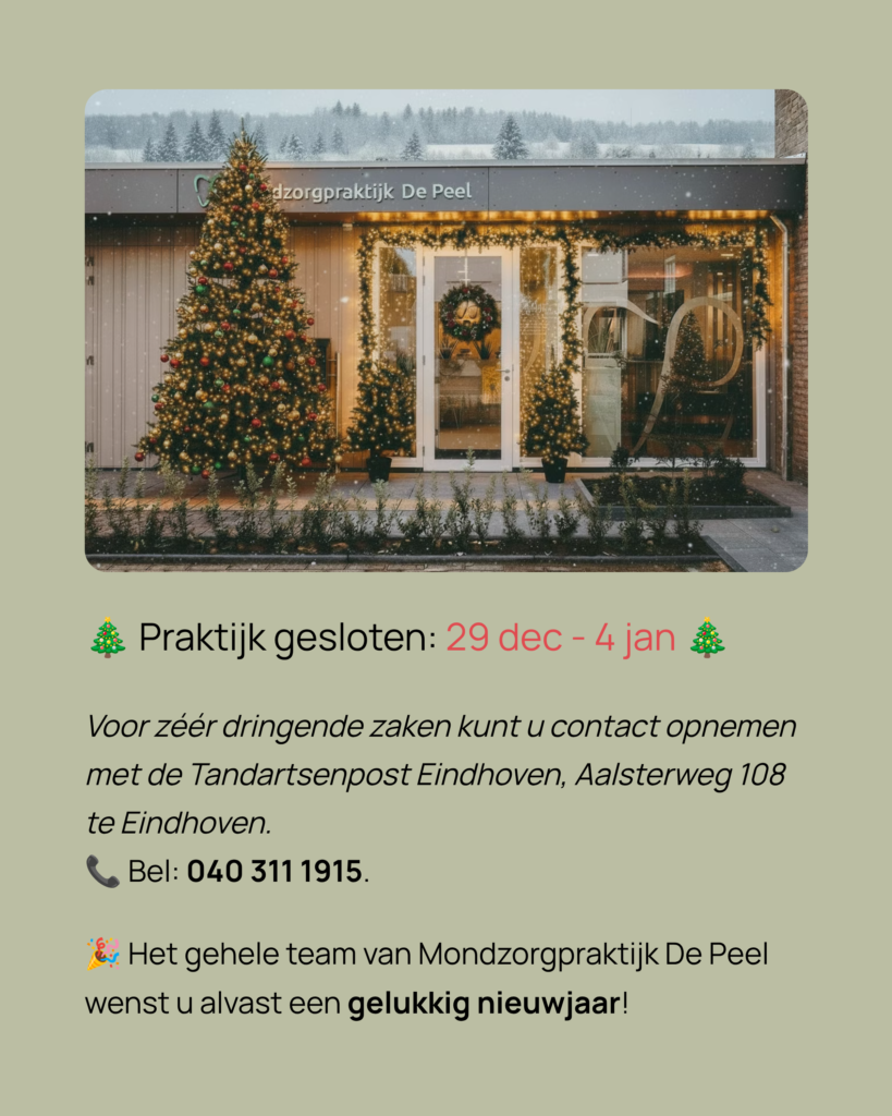 Wilt u een afspraak maken? Bel ons dan op onderstaand telefoonnummer of stuur een e-mail naar info@mondzorgpraktijkdepeel.nl